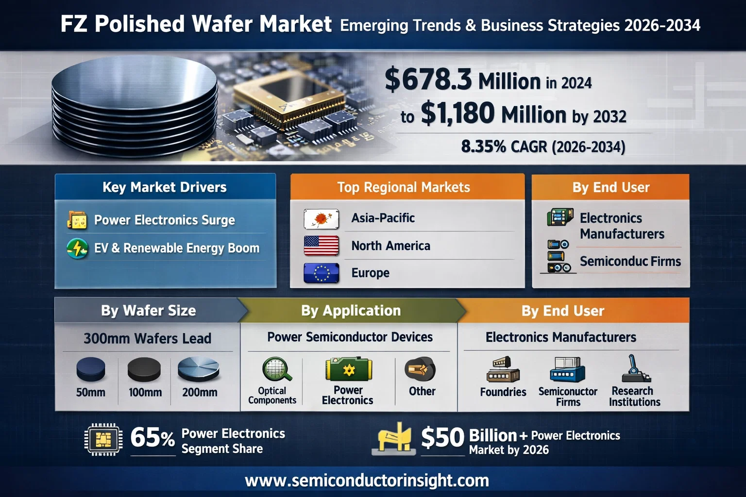 FZ Polished Wafer Market, valued at USD 678.3 million in 2024, is poised for substantial growth, projected to reach USD 1,180 million by 2032. This expansion, representing a compound annual growth rate (CAGR) of 8.35% during the forecast period 2026-2034, is detailed in a comprehensive new report published by Semiconductor Insight. The study underscores the critical role of Float Zone polished wafers in enabling high-performance semiconductor devices, particularly in power electronics and advanced optical applications.