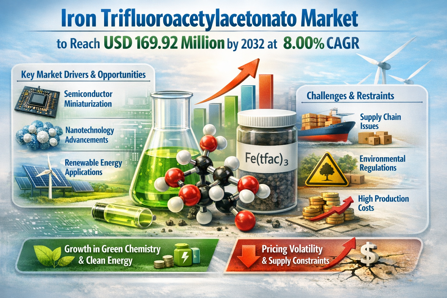 Global Iron Trifluoroacetylacetonato Market is demonstrating robust expansion, with its valuation reaching USD 85 million in 2023. According to the latest industry analysis, the market is projected to grow at a CAGR of 8.00%, reaching approximately USD 169.92 million by 2032. This growth trajectory is primarily driven by escalating applications in catalysis and material sciences, particularly in semiconductor manufacturing and nanotechnology sectors where high-purity specialty chemicals are increasingly demanded.