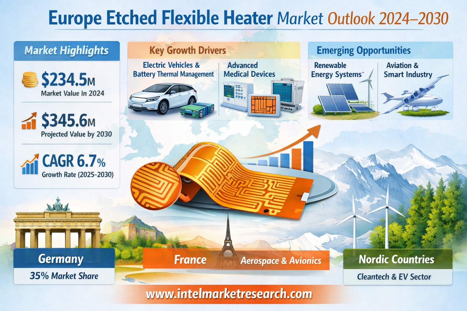 According to a new report from Intel Market Research, the Europe Etched Flexible Heater market was valued at USD 234.5 million in 2024 and is projected to reach USD 345.6 million by 2030, growing at a CAGR of 6.7% during the forecast period (2025–2030). This steady growth is fueled by rising demand from the automotive and medical sectors, along with increasing adoption of advanced thermal management solutions across European industries.