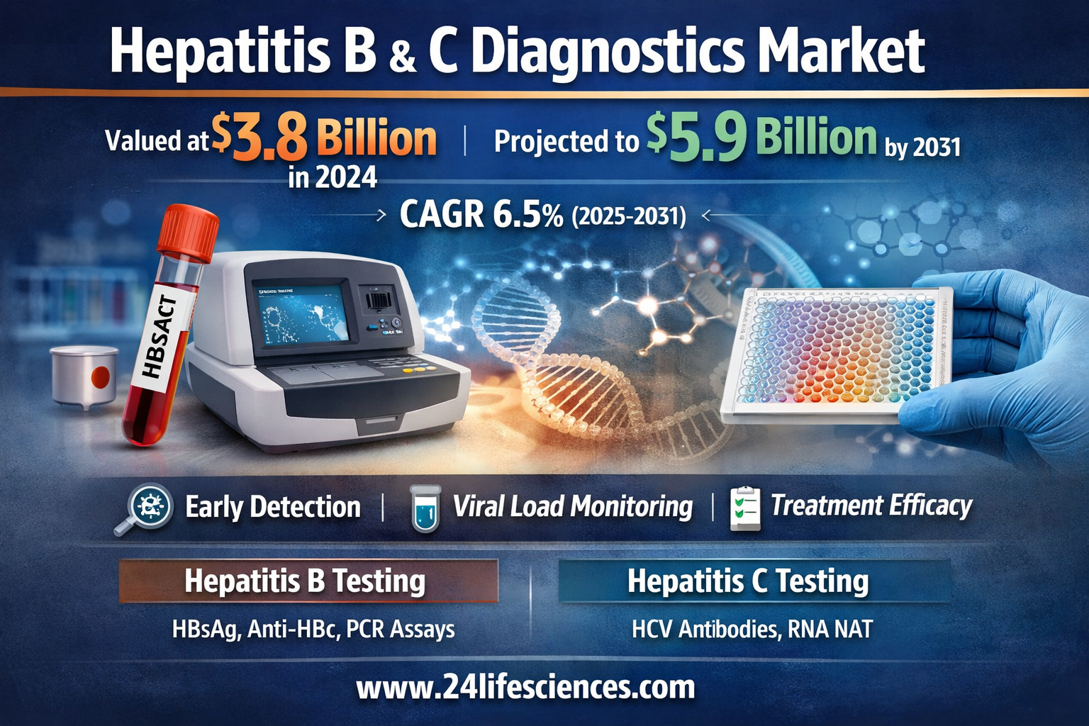 According to a newly published market research report by 24LifeSciences, global Hepatitis B and C Diagnostics market was valued at USD 3.8 billion in 2024 and is projected to reach USD 5.9 billion by 2031, growing at a compound annual growth rate (CAGR) of 6.5% during the forecast period 2025-2031.