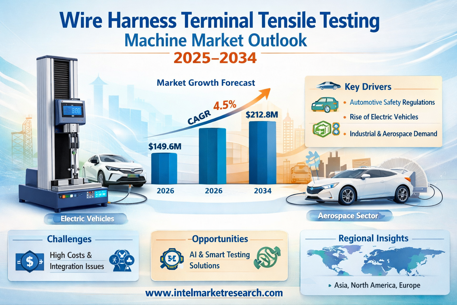 According to a new report from Intel Market Research, the global Wire Harness Terminal Tensile Testing Machine market was valued at USD 142.5 million in 2025 and is projected to grow from USD 149.6 million in 2026 to USD 212.8 million by 2034, exhibiting a CAGR of 4.5% during the forecast period (2025–2034). This steady growth trajectory is driven by escalating automotive safety regulations, the rapid expansion of electric vehicle production, and the increasing need for precision quality assurance across wire harness manufacturing operations worldwide.
