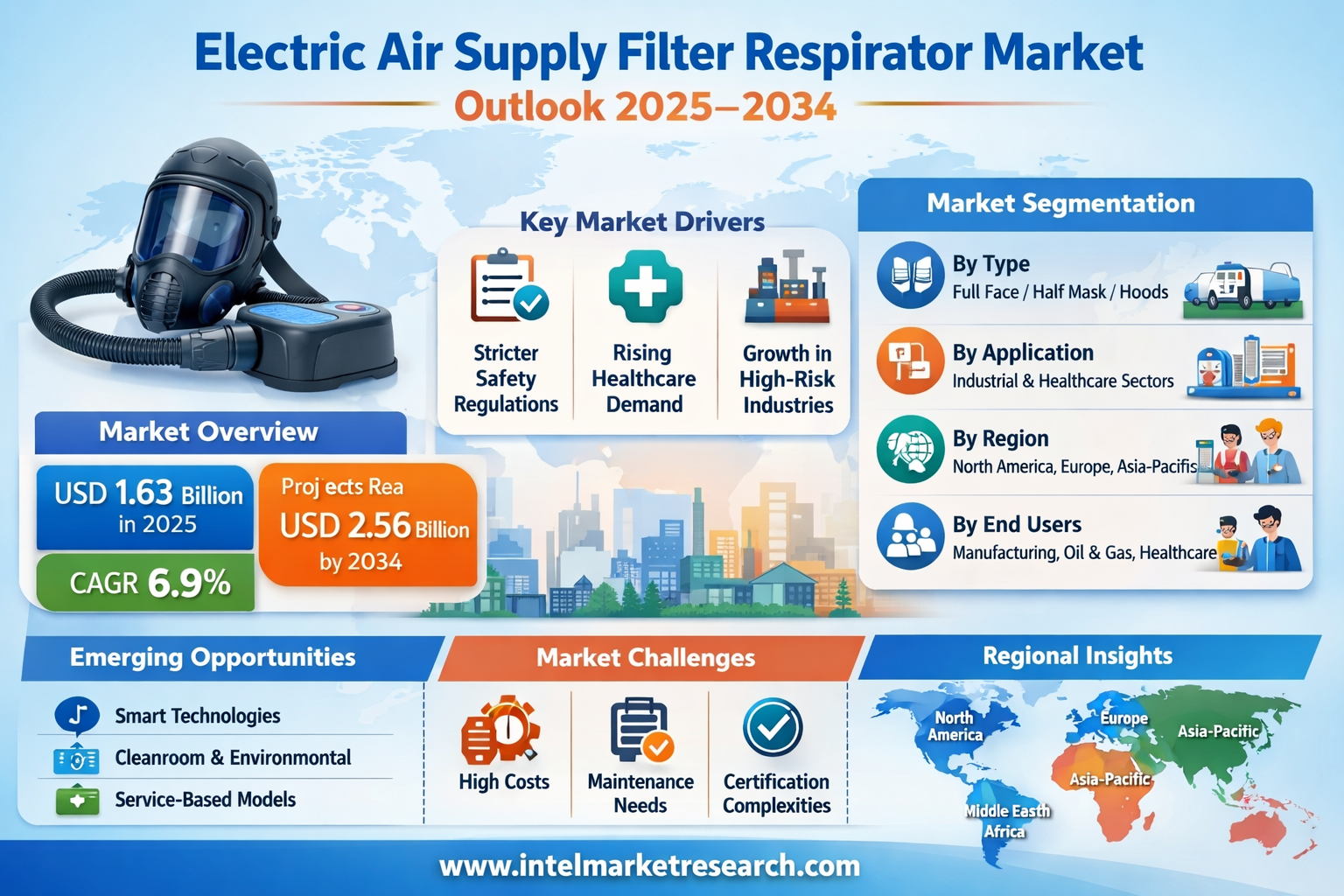 According to a new report from Intel Market Research, the global Electric Air Supply Filter Respirator market was valued at USD 1.63 billion in 2025 and is projected to grow from USD 1.74 billion in 2026 to reach USD 2.56 billion by 2034, exhibiting a robust CAGR of 6.9% during the forecast period (2025–2034). This growth is propelled by tightening global occupational health and safety regulations, heightened post-pandemic awareness of airborne pathogen protection, and the accelerating expansion of high-hazard industrial activities across emerging economies.
