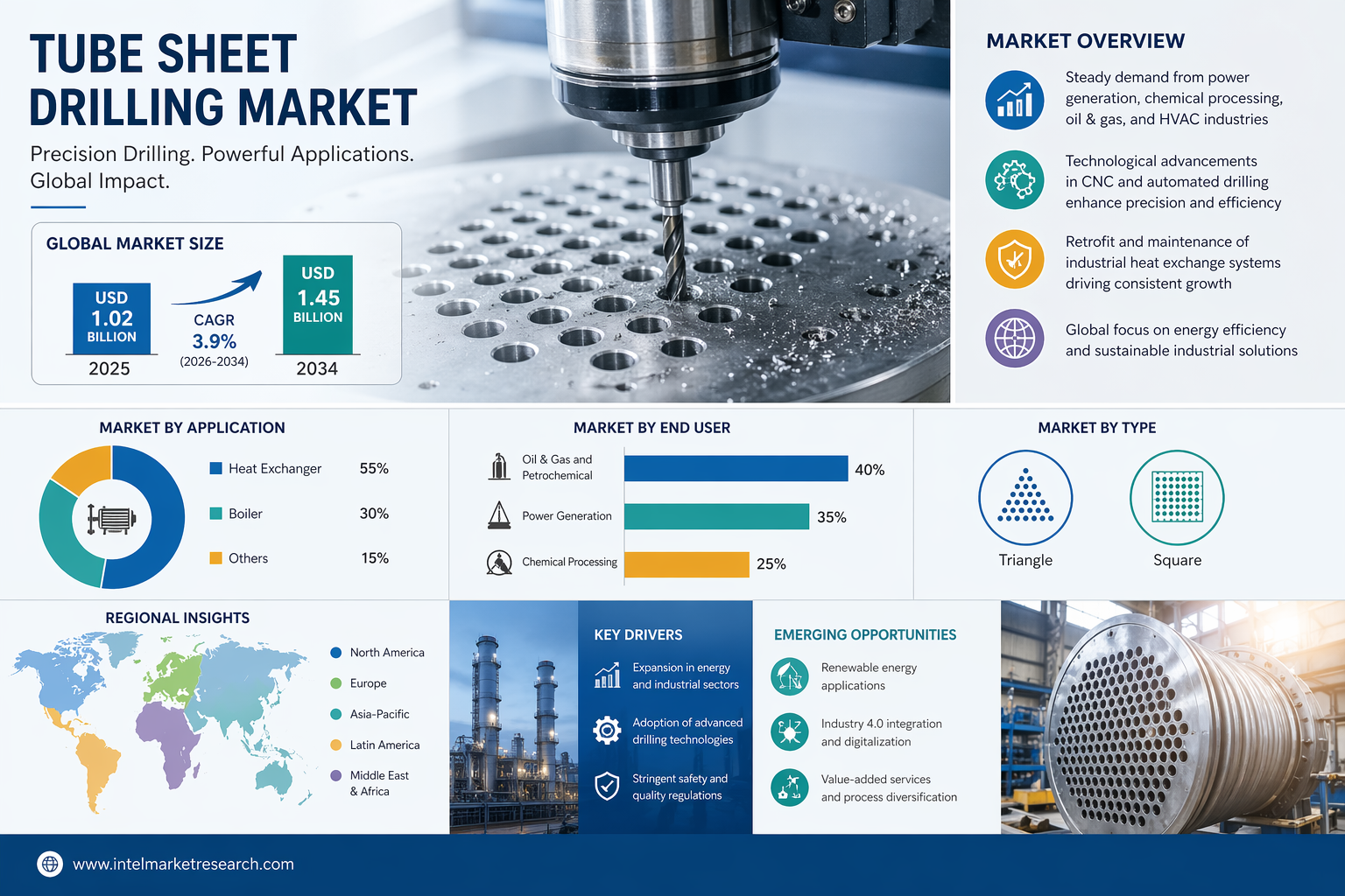 The Tube Sheet Drilling market stands to benefit from the global transition to renewable energy and ongoing industrial modernization. The aging infrastructure in developed regions and growth in concentrated solar power (CSP) and geothermal systems create demand for re-drilling and MRO services. Key enablers include: