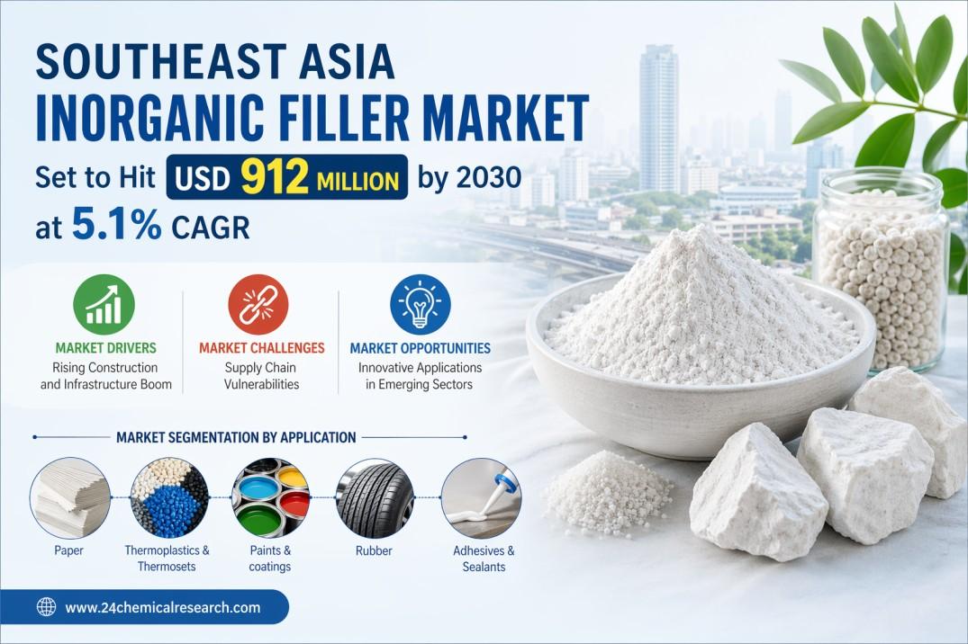 Southeast Asia Inorganic Filler Market has shown remarkable resilience and growth, with its valuation reaching USD 678 million in 2024. According to comprehensive industry analysis, the market is projected to expand at a CAGR of 5.1%, ultimately reaching approximately USD 912 million by 2030. This upward trajectory is primarily fueled by increasing demand across plastics, rubber, and construction industries, where inorganic fillers are essential for enhancing material properties while reducing costs.