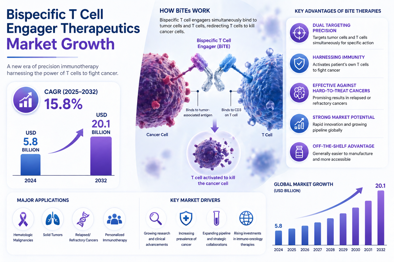 According to a newly published market research report by 24LifeSciences, global bispecific T cell engager therapeutics market was valued at USD 5.8 billion in 2024 and is projected to reach USD 20.1 billion by 2032, growing at a compound annual growth rate (CAGR) of 15.8% during the forecast period 20252032.